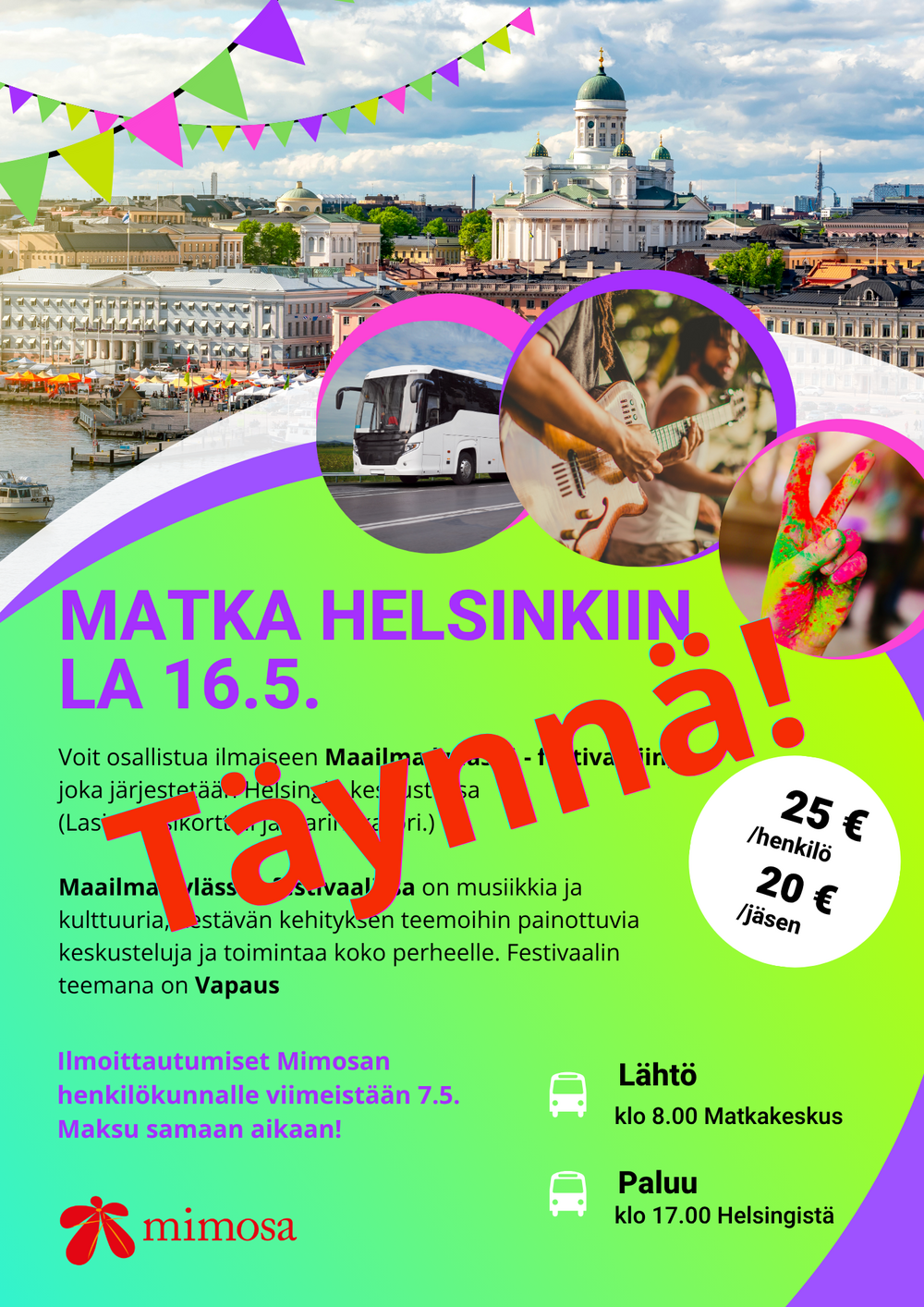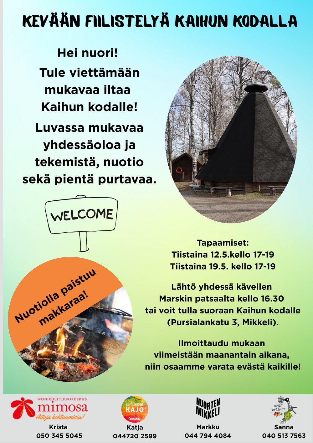 Nuorten omat (13-29v.) Kaihun Kota-illat toukokuussa 12.5. ja 19.5. klo 17-19. Mimosasta paikalla on Krista. Tule Sinäkin!