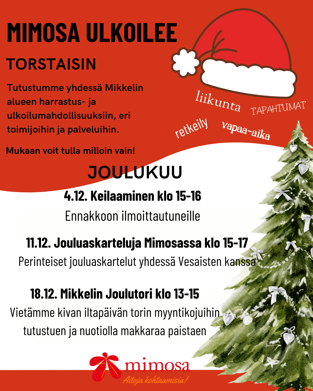 TOISTO-ryhmä on täynnä. Ryhmä joulutauolla 16.12.-12.1.